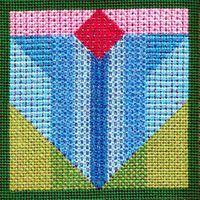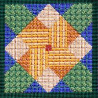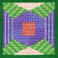 The Flower Quilt Blocks are nine similar flower-inspired canvaswork squares that all have an "over stitched" pattern on top of the base stitches.