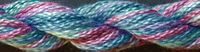Watercolours® is a variegated 3-strand pima cotton. Each strand is roughly the weight of a Pearl #5.